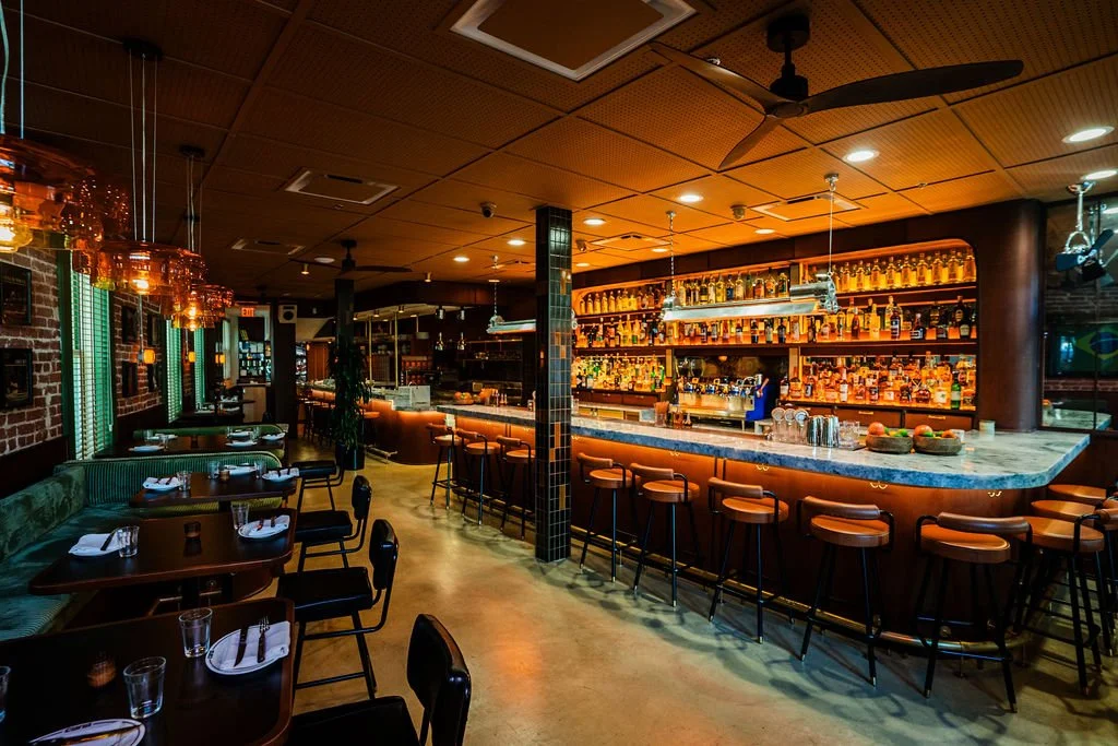 Designed by Thales Maia of Rio de Janeiro with our founder, Cana is inspired by Brazil’s mid-century Golden Age and the neighborhood bar culture of Rio. Warm wood tones and amber light make it a natural setting for conversation and connection.