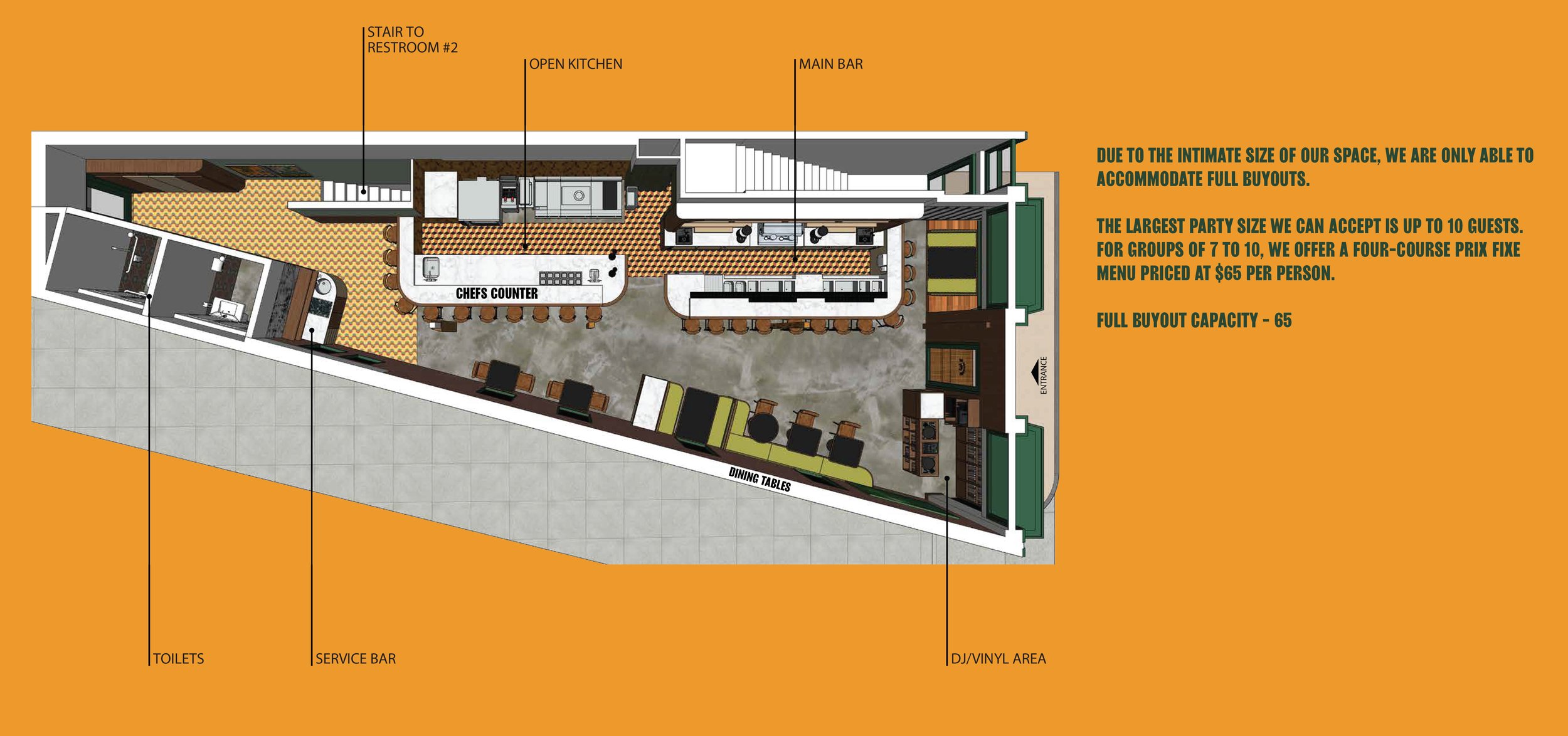 We focus on smaller, intimate gatherings and select catering. We offer partial and full buyouts, each guided by clear policies to ensure a smooth experience aligned with our space and service standards. For full buyouts, the room pairs well with our analog DJ and vinyl setup.